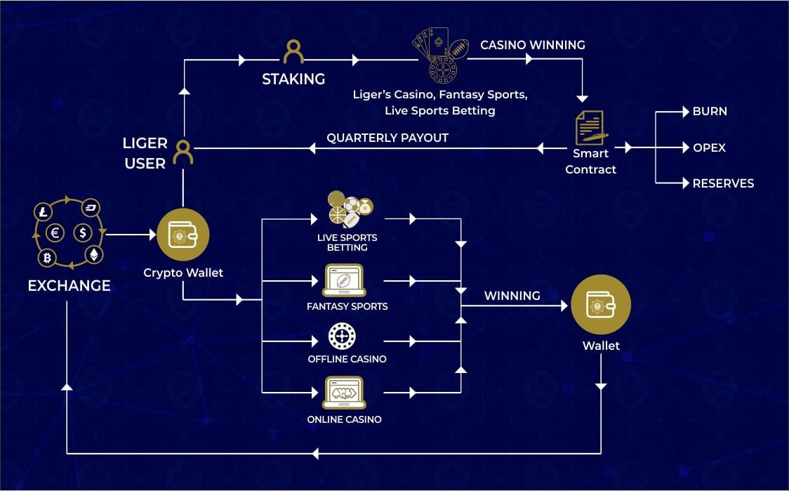 LIGER will use SMART CONTRACTS to offer betting and burn a portion of the tokens corresponding to the casino winnings.