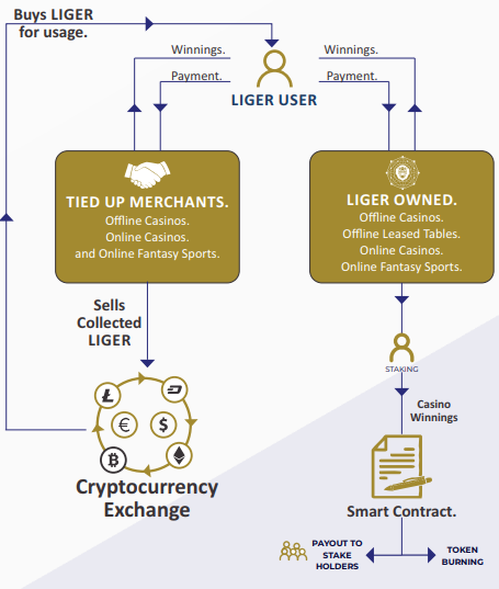 LIGER is building a next generation cryptocurrency payment mechanism based on the Ethereum blockchain. Casinos and betting industries are targeted by the platform. Some features for real-time transactions and easy integration are available on the platform. Online casino betting in real time through mobile apps is offered to players around the world. They have bonds with many casinos, and in the future, they want to have a casino.