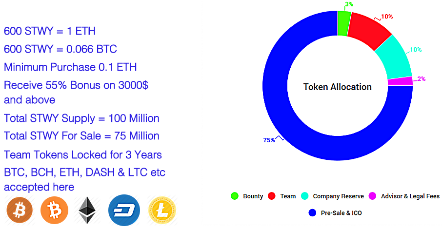 The goal of this ICO is to create a retail e-commerce market where buyers and sellers can start their merchandising and service businesses for both fiat and cryptocurrency payments. Storweey's vision is to simplify progressive knowledge to meet the needs of an ever-changing market.