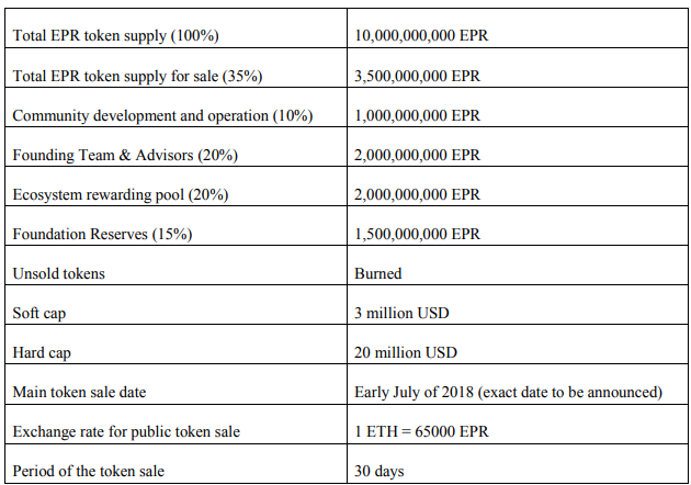 Люди могут получить токен ЭПР через публичное предложение или путем участия в финансировании проектов в области возобновляемых источников энергии. Общее количество ЭПР зафиксировано на уровне 10 000 000 000. Нижеприведенный код является образцом нашего умного контракта ERC20:
