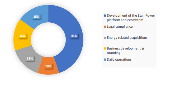 Выручка от продажи токенов будет использована для исследований и разработок платформы EtainPower и развития бизнеса. Фонд будет использоваться следующим образом: